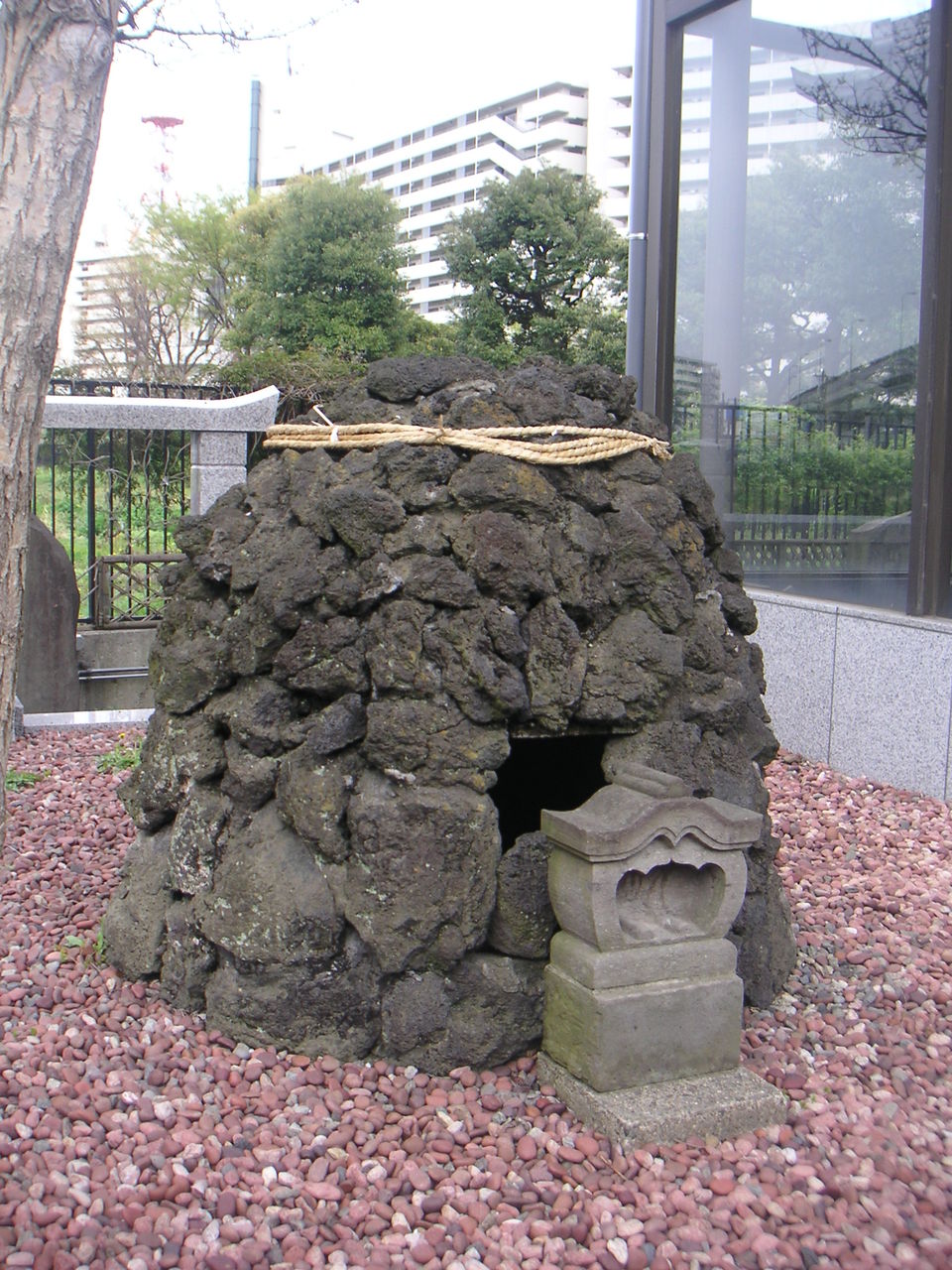 境内にある梅若塚です。何となく、能「隅田川」の作り物に似ています。