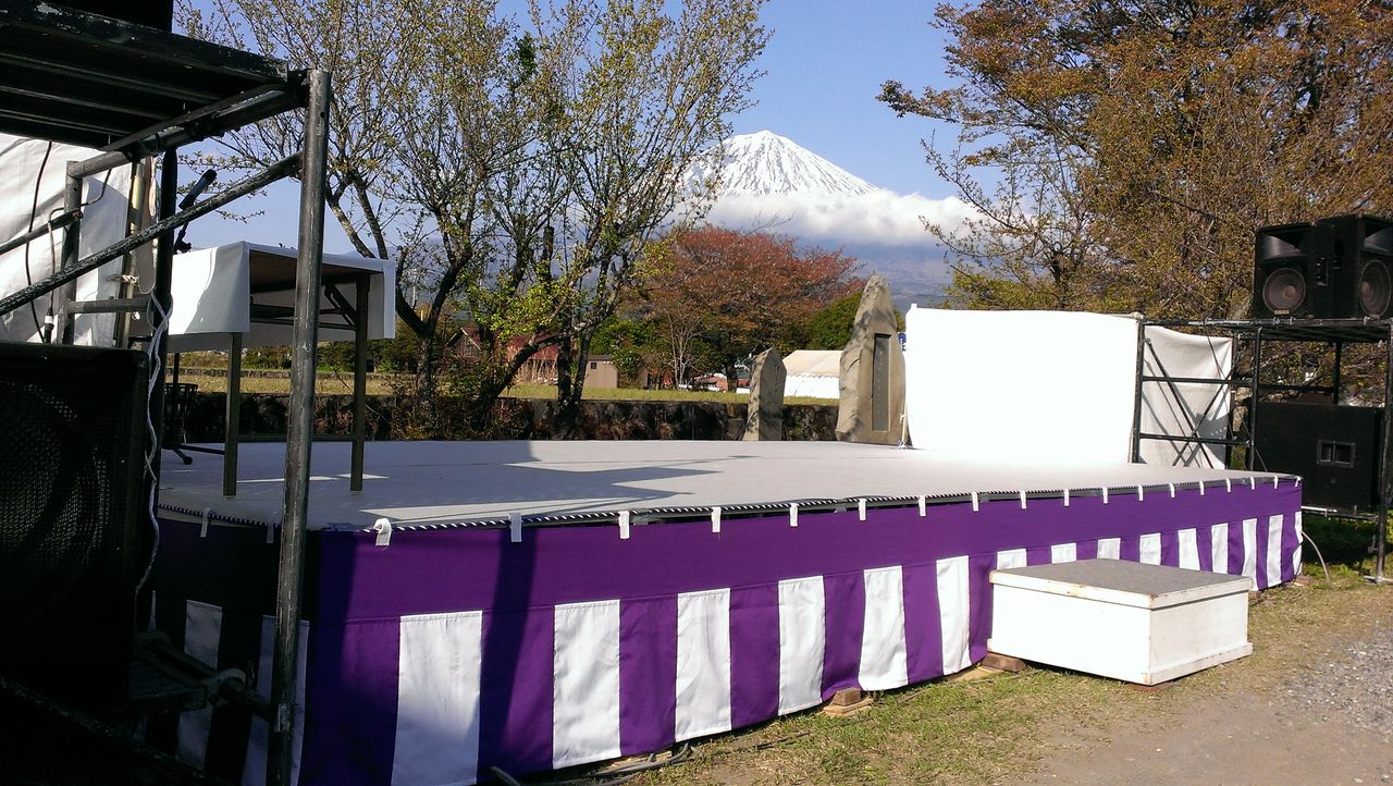 ご覧のように、富士山をバックに臨む特設舞台で、謡と仕舞を披露しました。