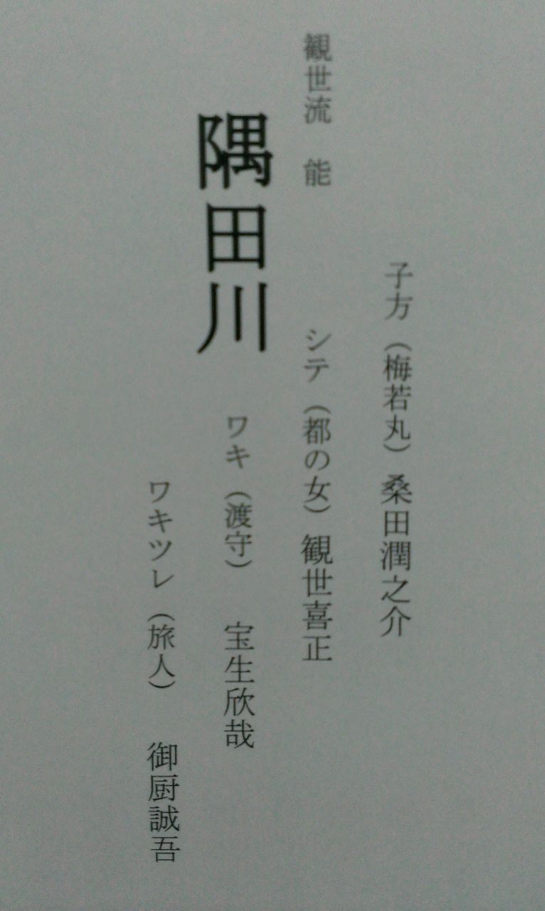 「隅田川」は悲劇的な終わり方なので、終演後シテが退場する時、満場の拍手は起こりません。