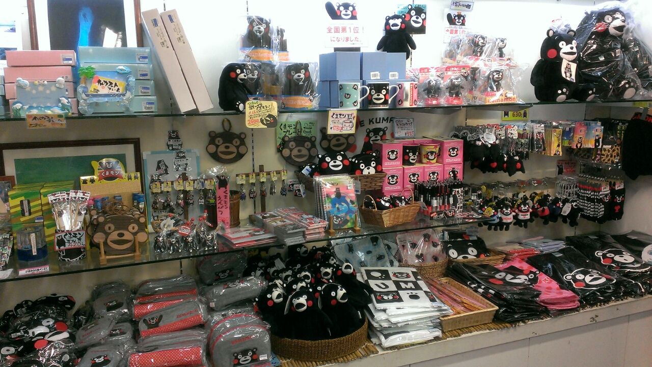 お土産屋はくまもんコーナーに、ぎっしりくまもんグッズ。