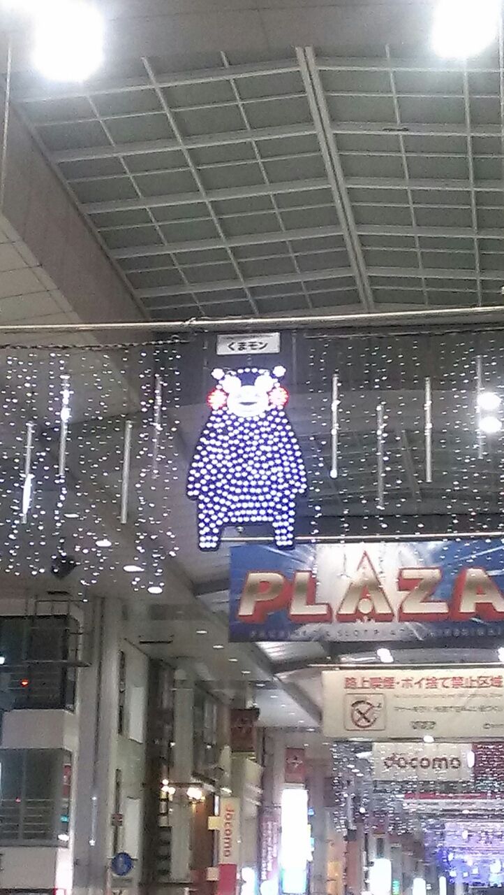 街のアーケードは、くまもんのライトアップ。