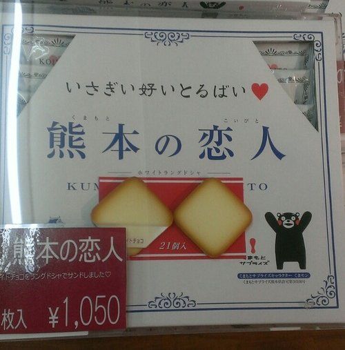 売られているお菓子はくまもんだらけ。