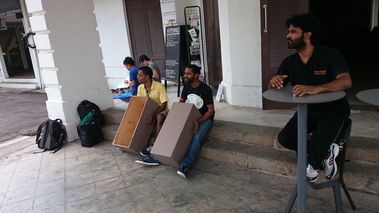 昨日の稽古から、主任講師の観世喜正師と、もう一人手伝いの能楽師もシンガポール入りし、盛り上がってきました。