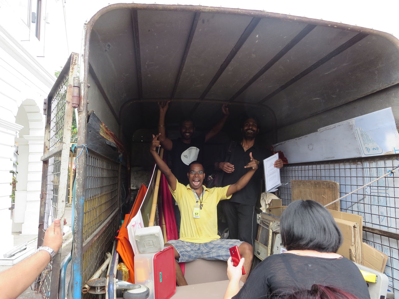 そのまま荷台にのりこんだまま、扉を閉めて出発していきました。