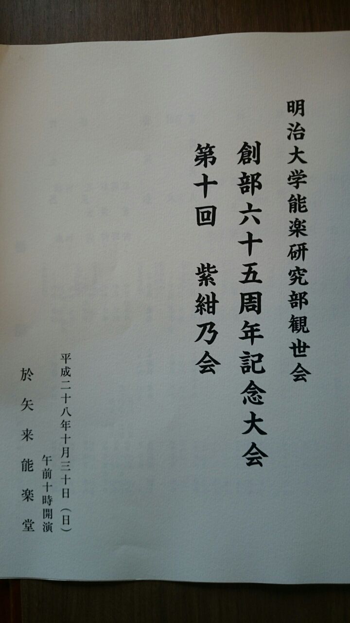 祝 明治大学能楽研究部 観世会 65周年