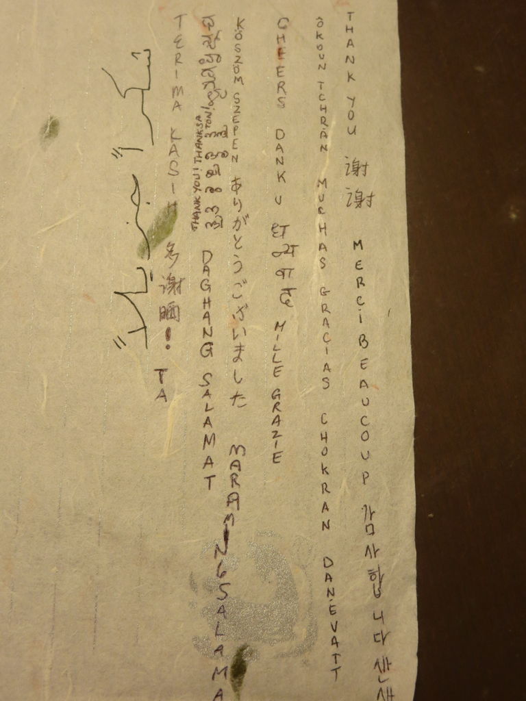 色んな国から集まっている学生らしく、何か国語かで、「有難うございます」が書いてあります。