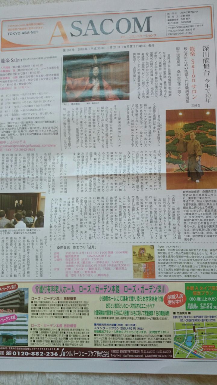 紙面は、今年で10周年を迎える「深川能舞台」にクローズアップして、私のインタビュー記事です。