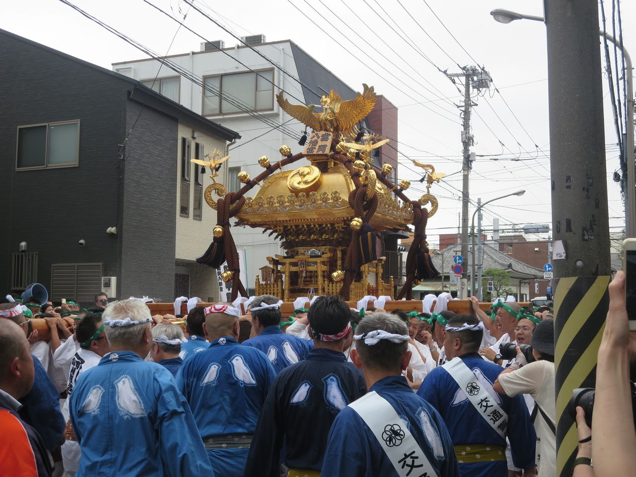 富岡八幡宮の本社御輿を、深川各町会でリレーで担ぎます。