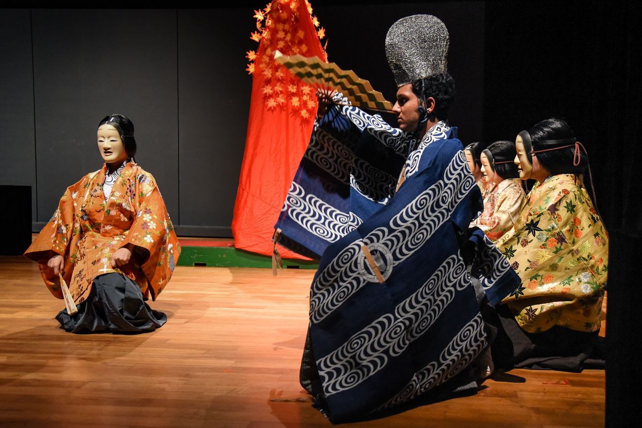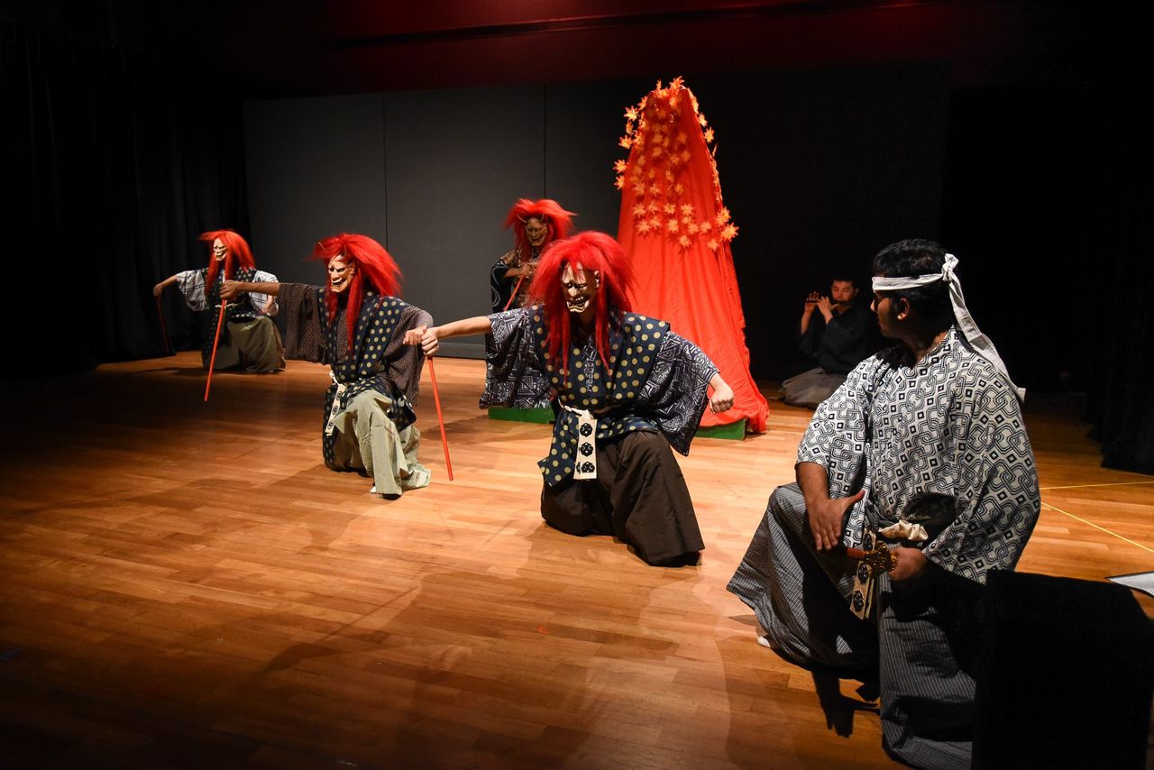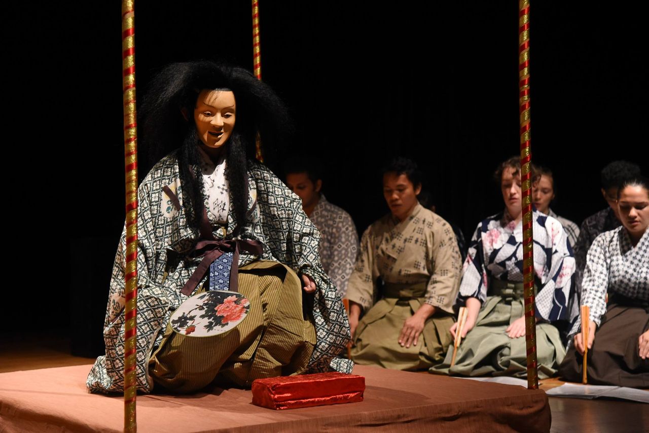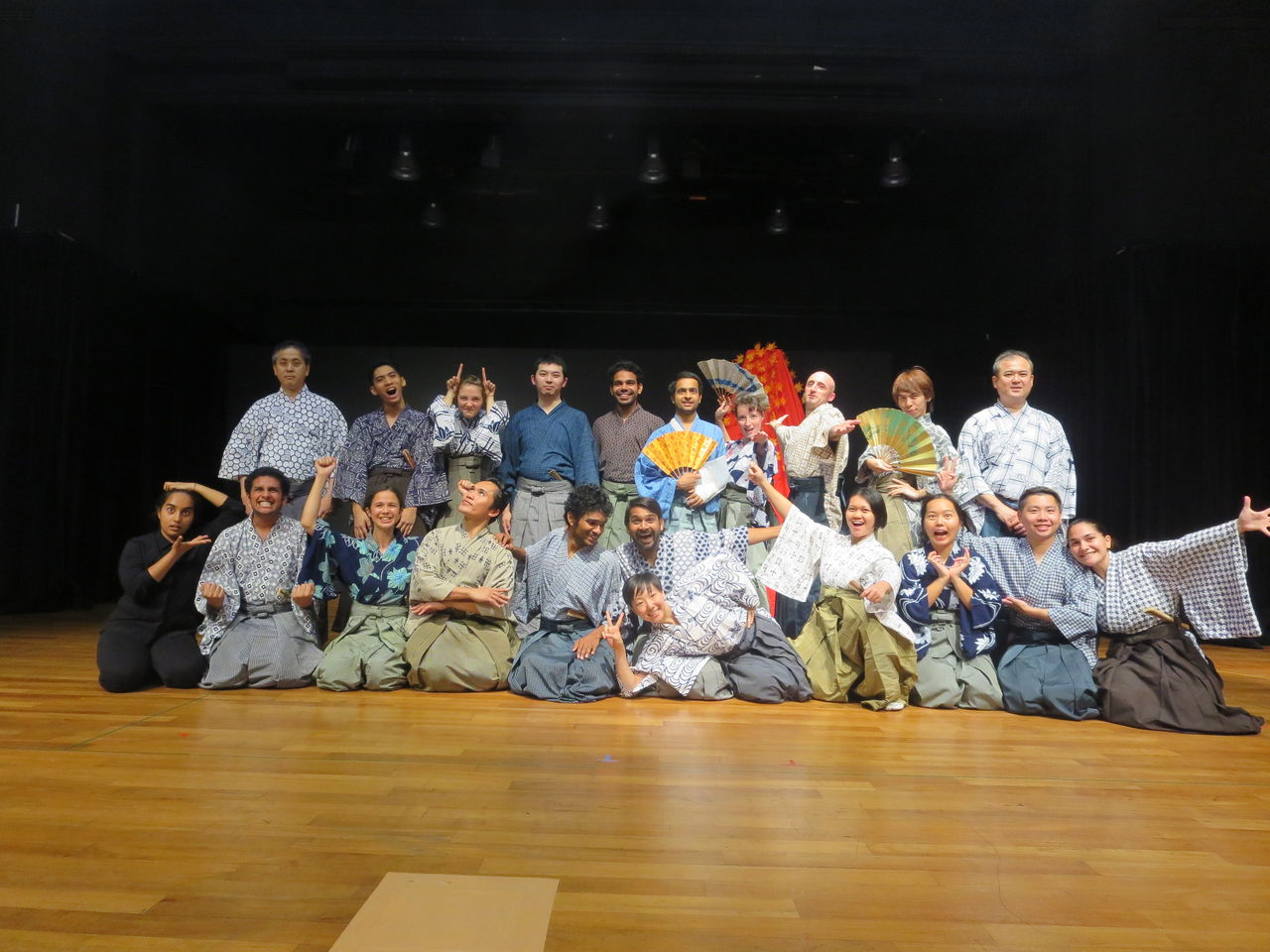 8週間に生徒達が「構え」、「摺り足」、「形」、「謡い」、「舞い」って色々習って、発表で「仕舞」を舞って、地謡も謡って、短くされた能曲の「邯鄲」と「紅葉狩」にも面付けて日本語の台詞も覚えて出演して、皆さんも大変頑張りました。その上に、8週間も生徒に教えて来た観世喜正先生と桑田貴志先生の教え方も凄く停止で体の動きだけで分かりやすかったんです。