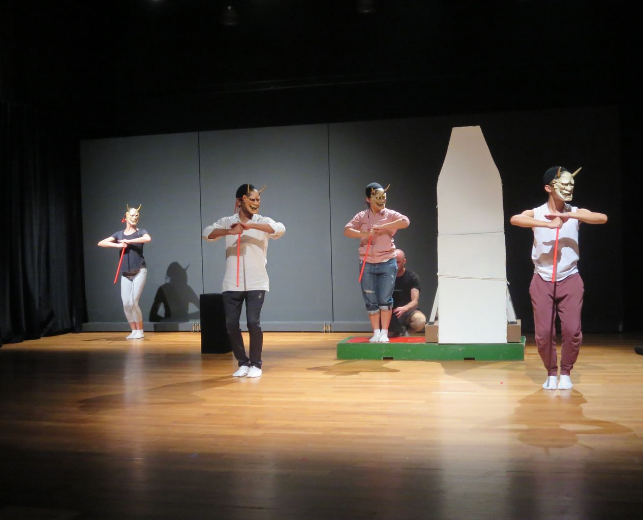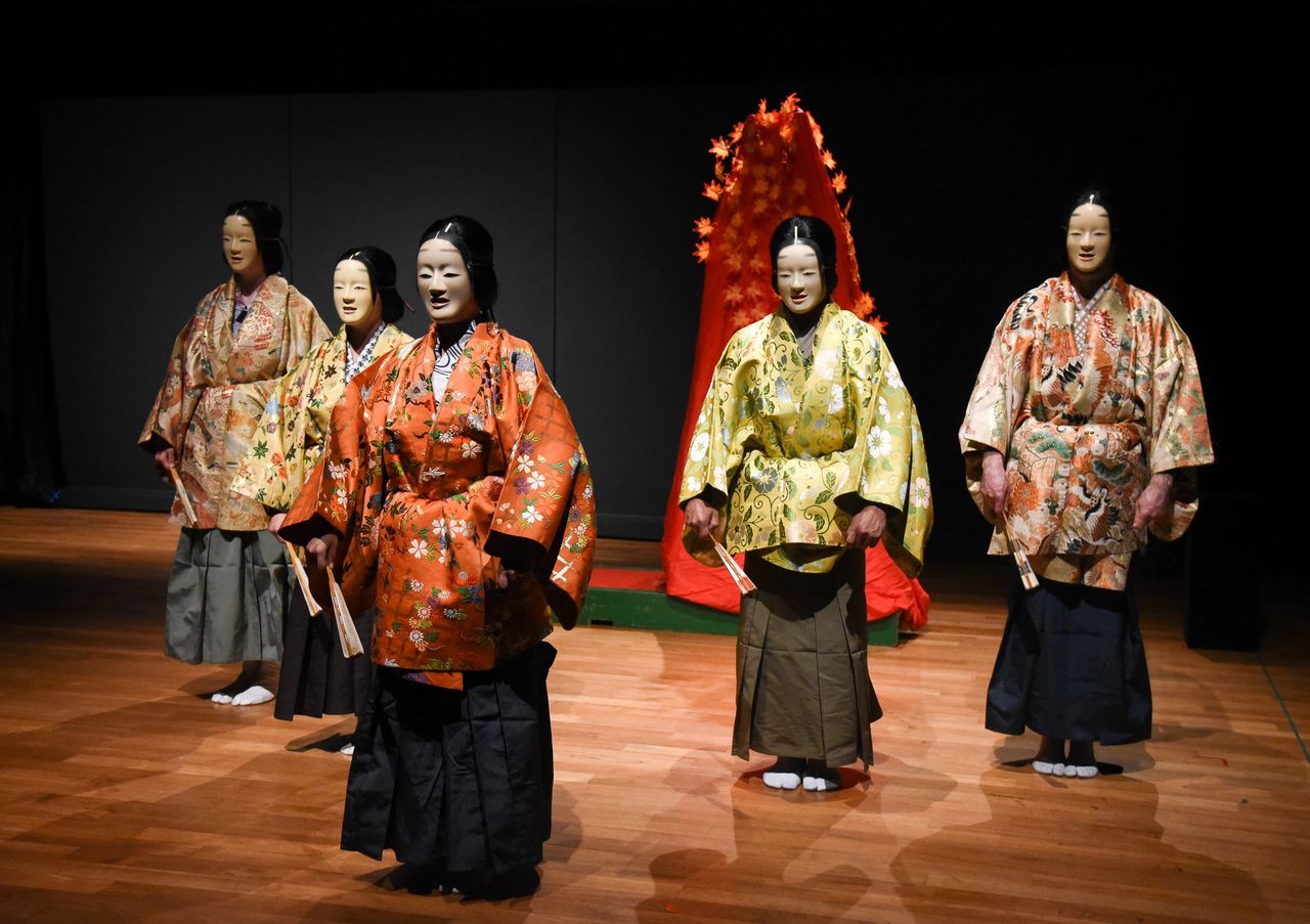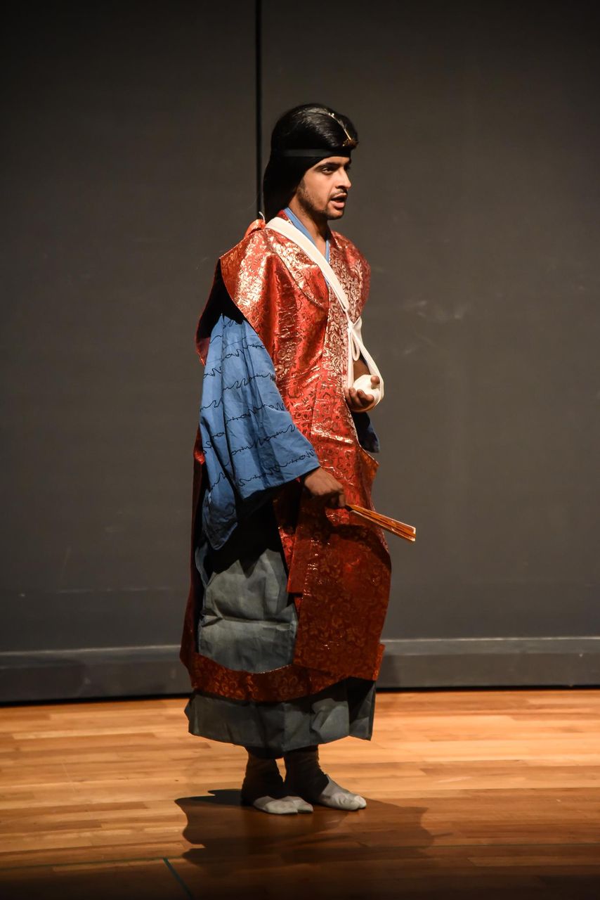 8週間に生徒達が「構え」、「摺り足」、「形」、「謡い」、「舞い」って色々習って、発表で「仕舞」を舞って、地謡も謡って、短くされた能曲の「邯鄲」と「紅葉狩」にも面付けて日本語の台詞も覚えて出演して、皆さんも大変頑張りました。その上に、8週間も生徒に教えて来た観世喜正先生と桑田貴志先生の教え方も凄く停止で体の動きだけで分かりやすかったんです。