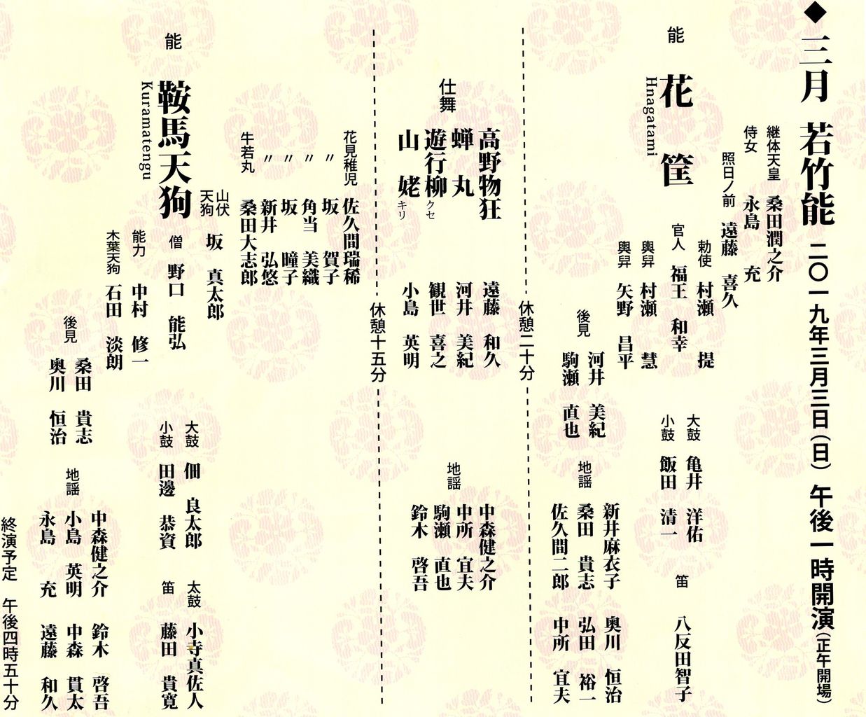 若竹能「花筐」「鞍馬天狗」ダブルで子方