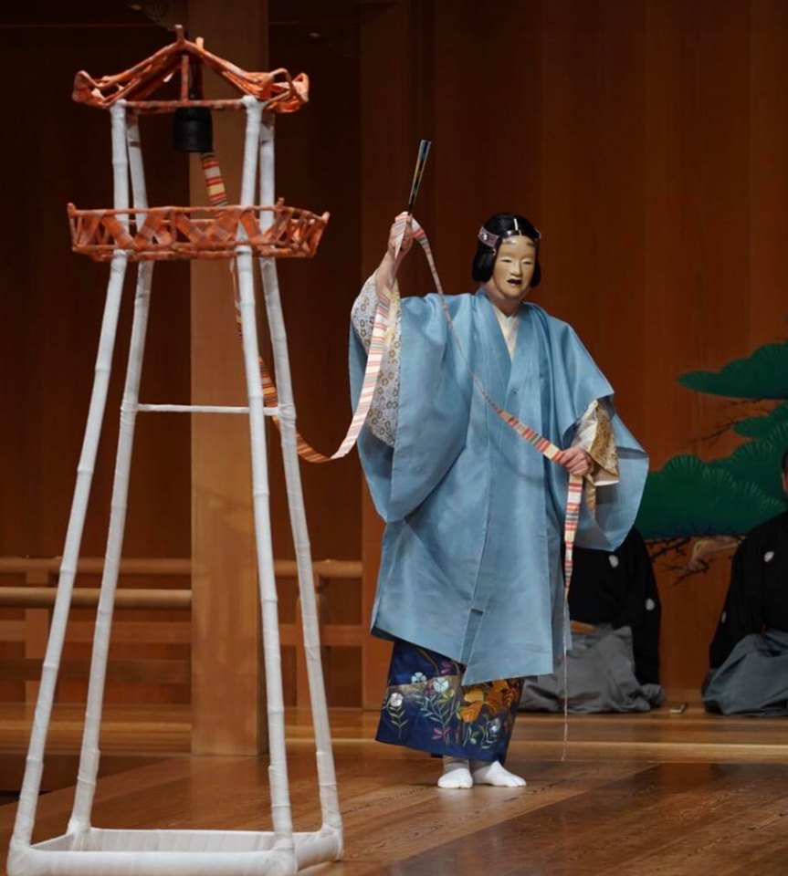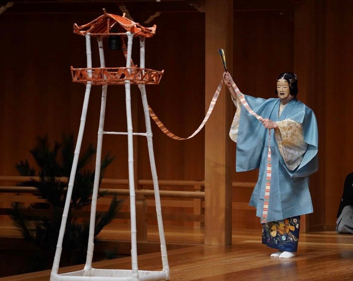能面をつけて限られた視野のなか、作り物に結ばれている紐をほどいてちょうど良い長さに持って、ねじれないように持って鐘を突く所作を見せるのは、案外難しいものでした。