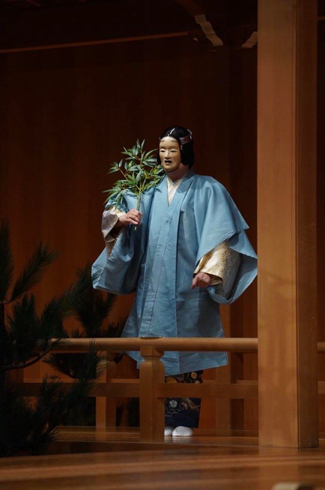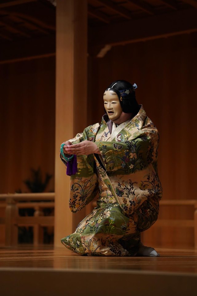 冒頭、幕が上がると登場音楽なしで、シテが舞台の真ん中に座着きます。