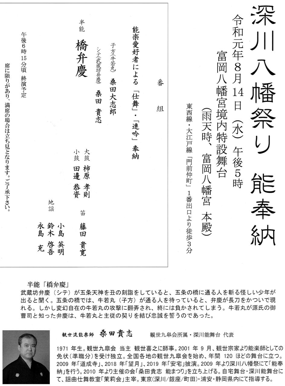 今年も「深川八幡祭 能奉納」無事に終わりました。