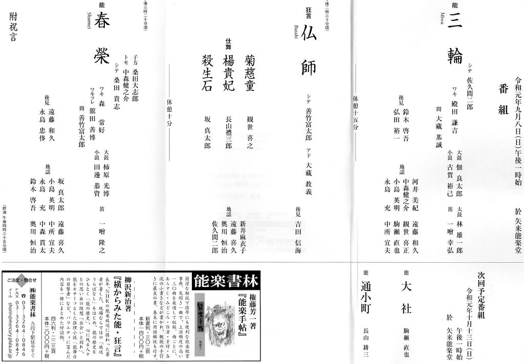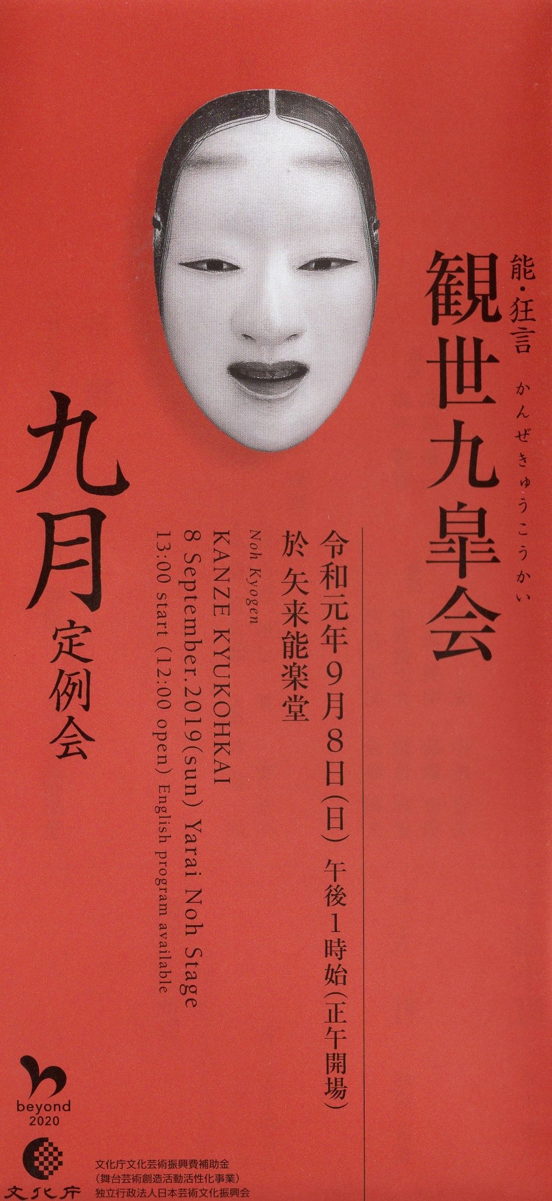 9月8日の観世九皐会 定例会にて能「春栄」を演じます。
