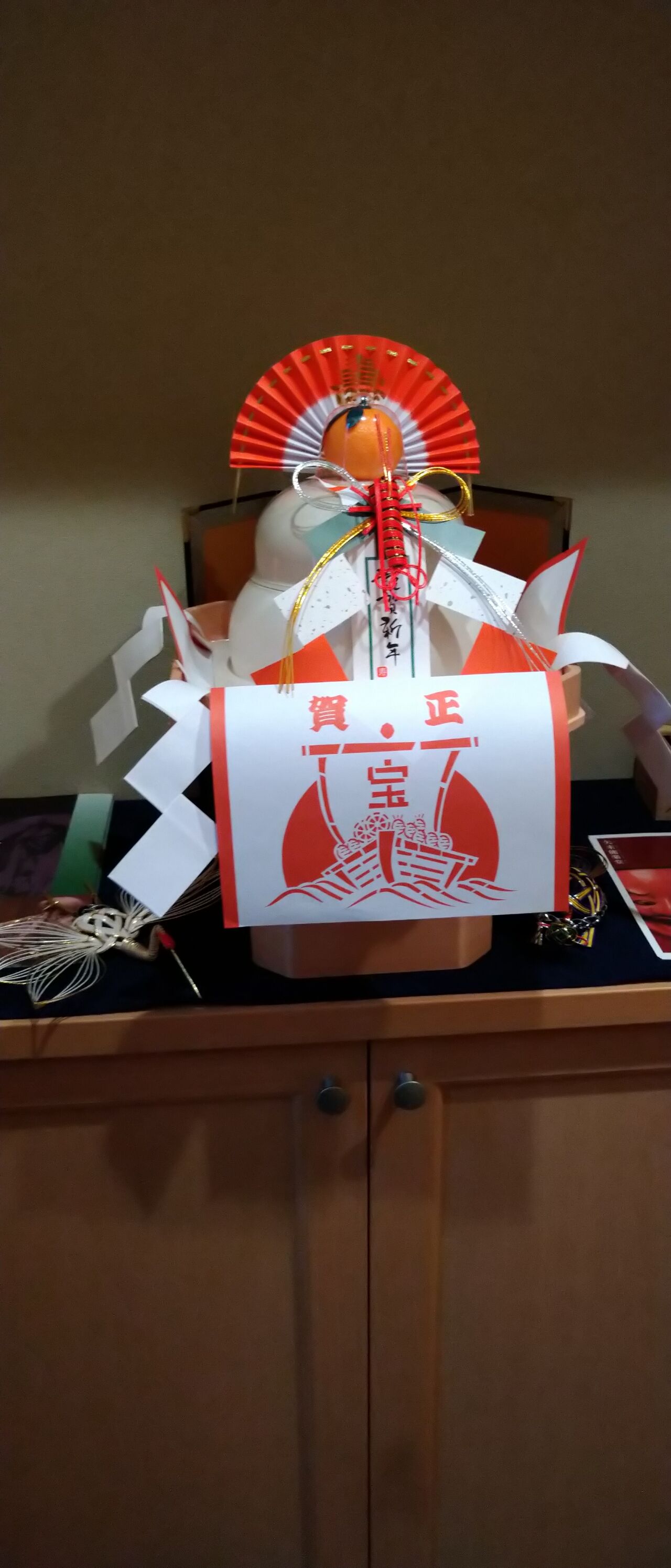 玄関に、鏡餅を飾って正月気分を出します。