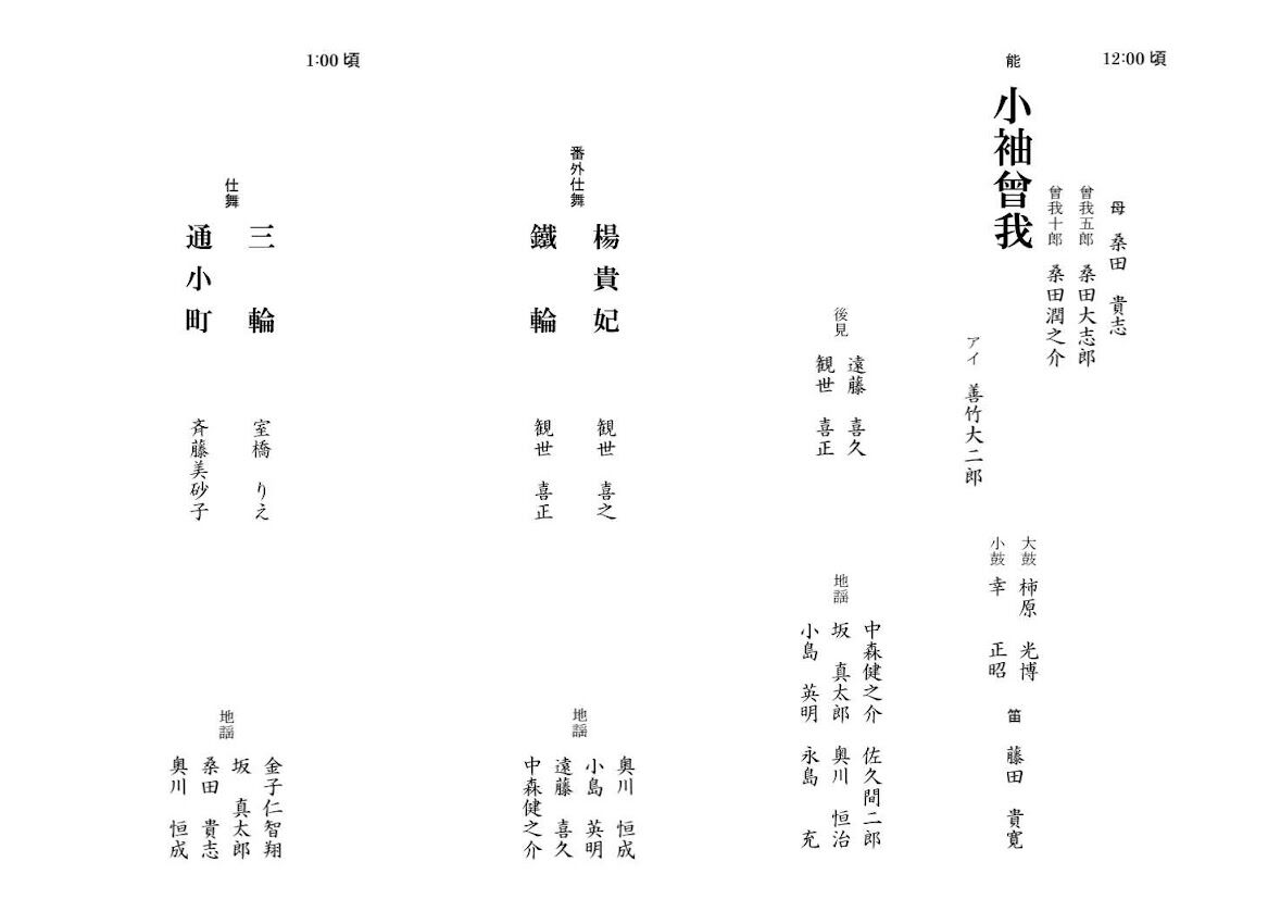 師匠である観世喜之師・観世喜正師をはじめ観世九皐会の方々、お三役の方々のお力添えをいただきます。