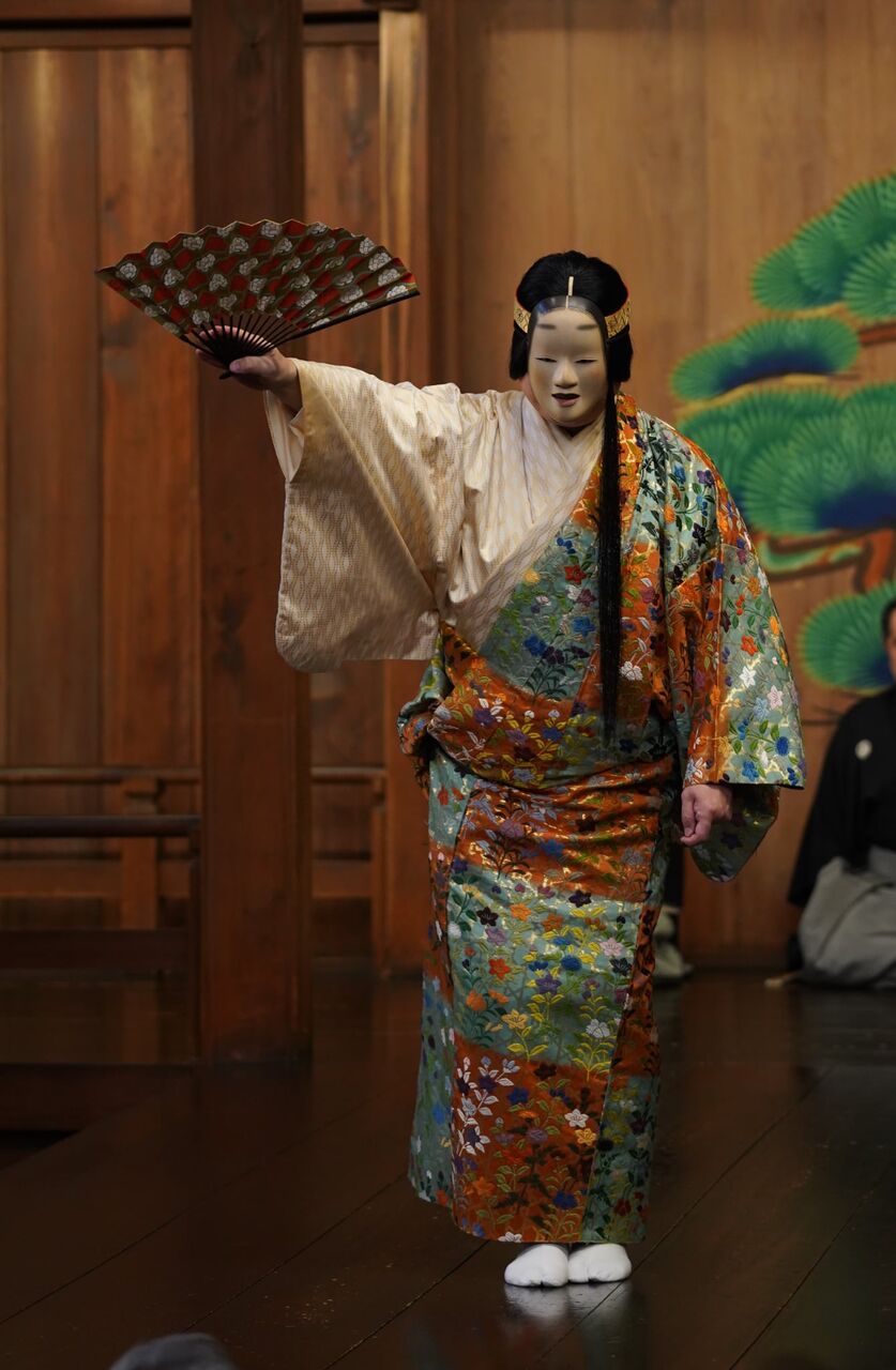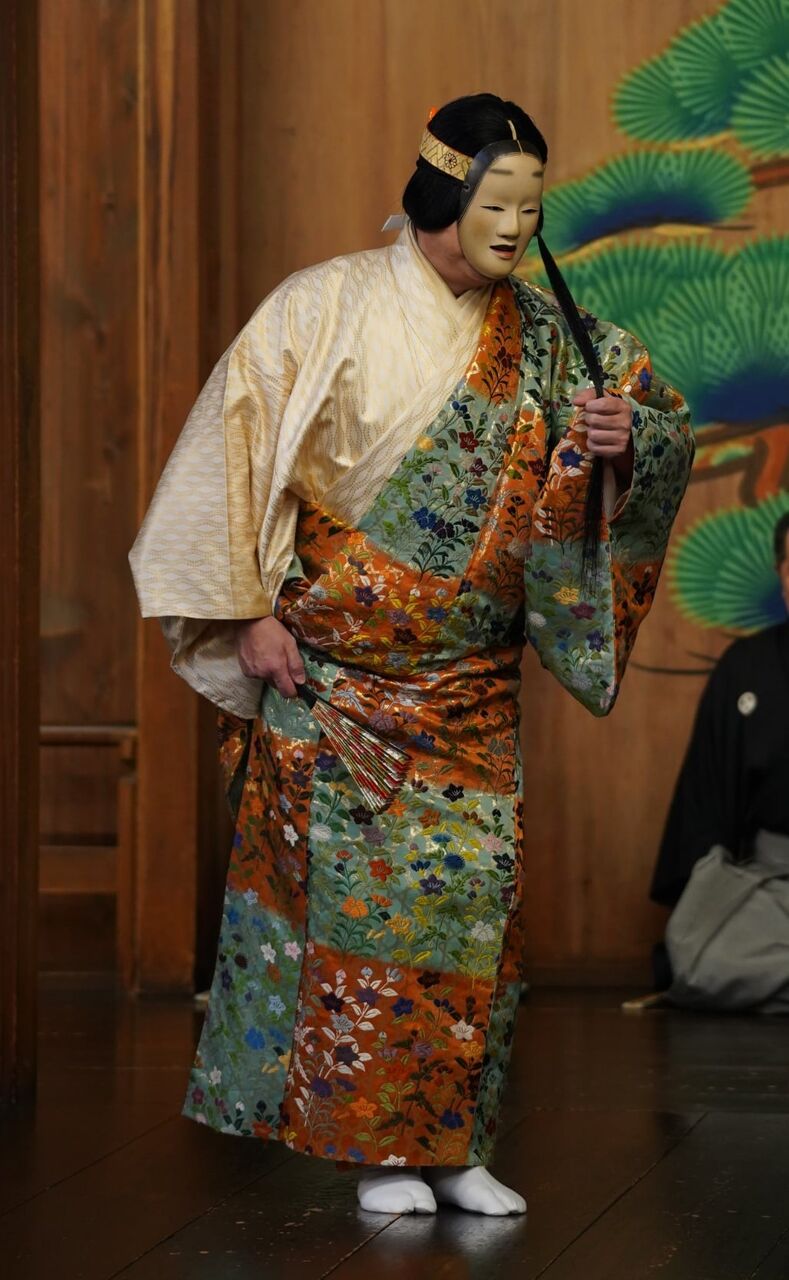 狂女物の中では、格別に高貴な身分です。継体天皇の妃となる照日の前がシテである「花筐」に並んで品位が必要とされるシテです。