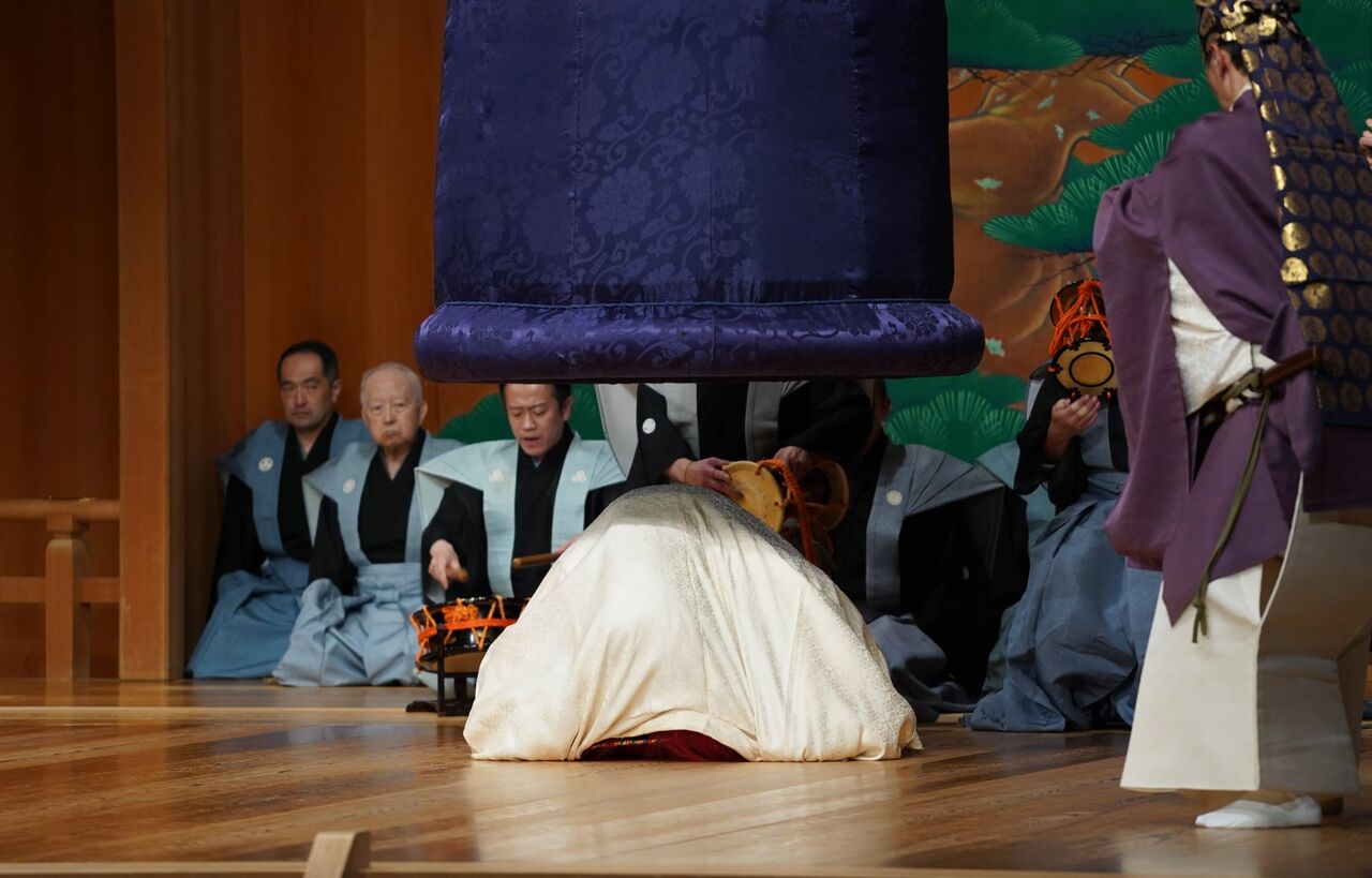 その後、狂言方の鐘後見が鐘を下ろし、ゆっくりと鏡の間に運んできます。