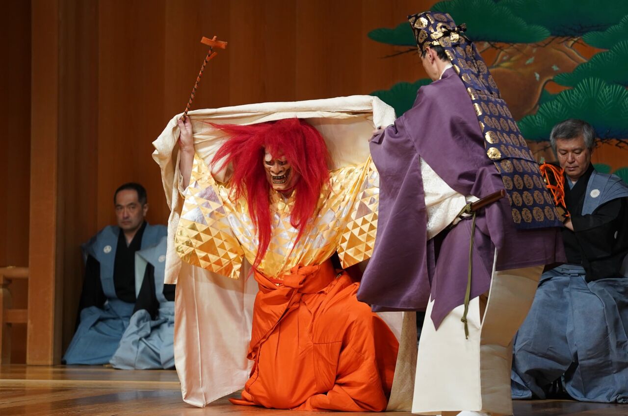舞台上で葛桶は、偉い人が座るものです。逆髪は、帝の皇女という身分の高い人だから葛桶に座ることはそんなに違和感はありません。実際に過去にそうやって演じた先輩もいらっしゃいました。