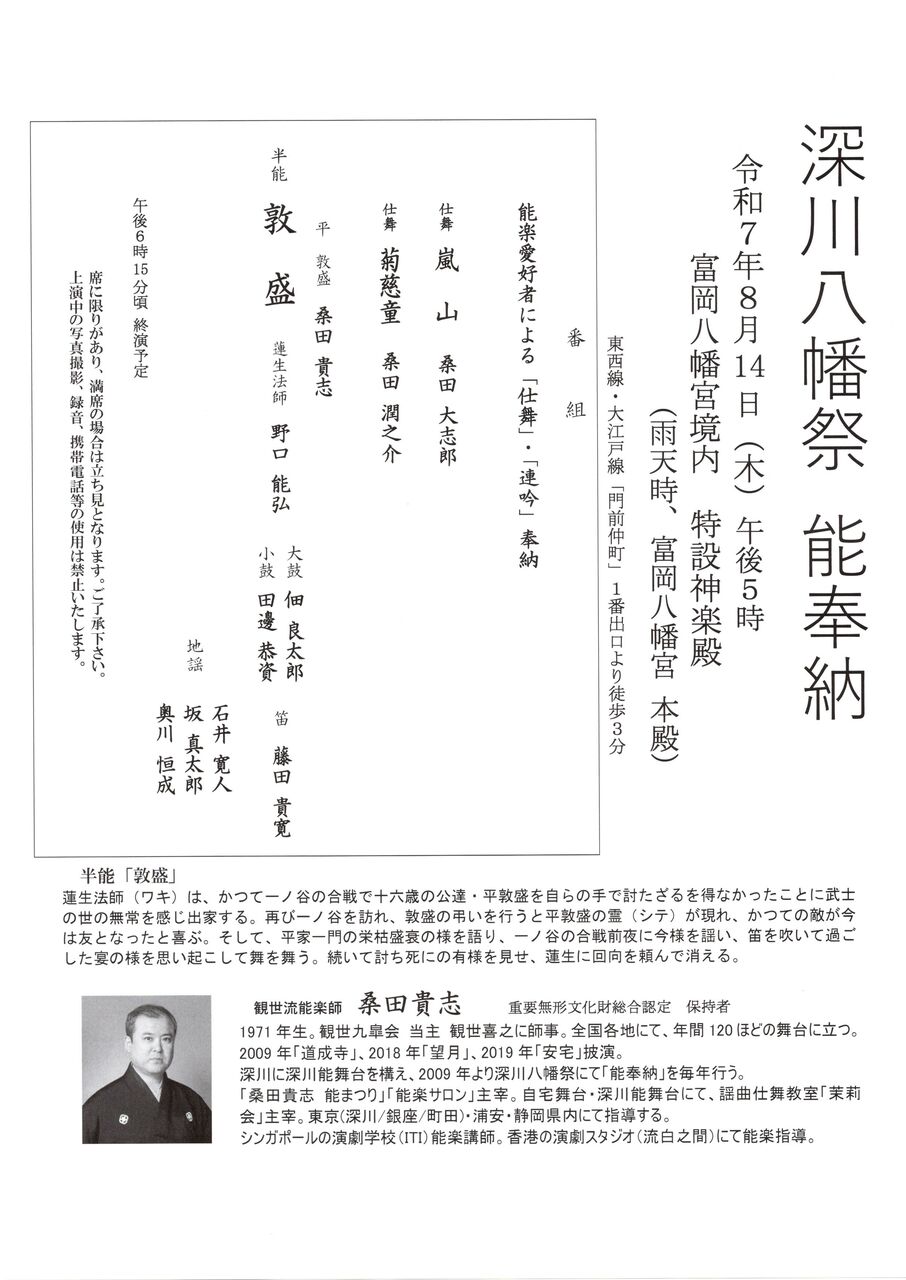 深川八幡祭 能奉納「敦盛」