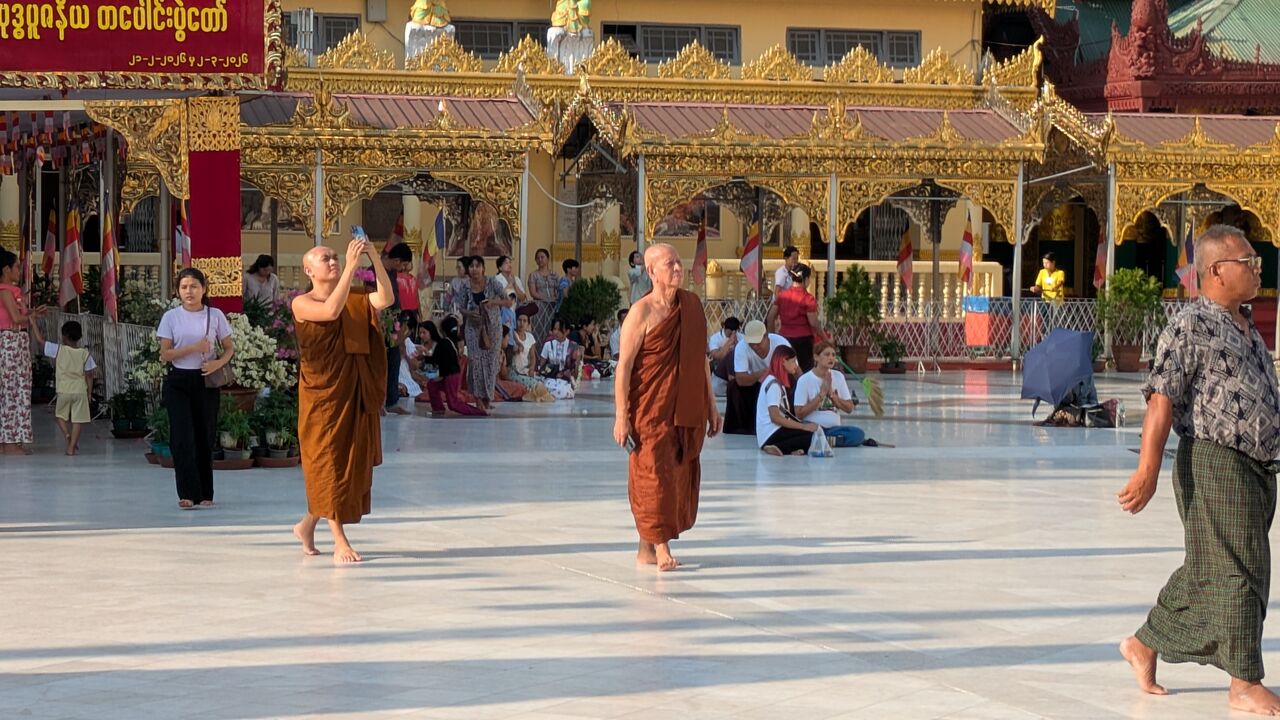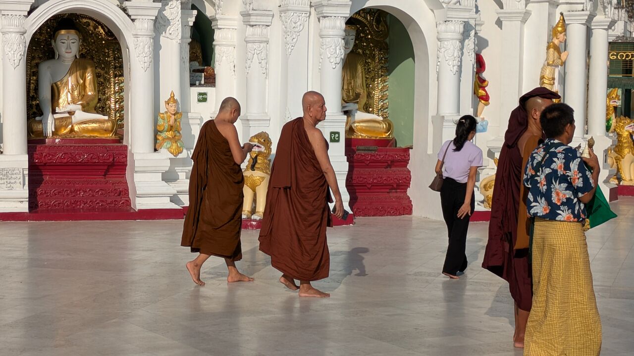 パゴダ内には、映画「ビルマの竪琴」で見た僧侶が歩いています。