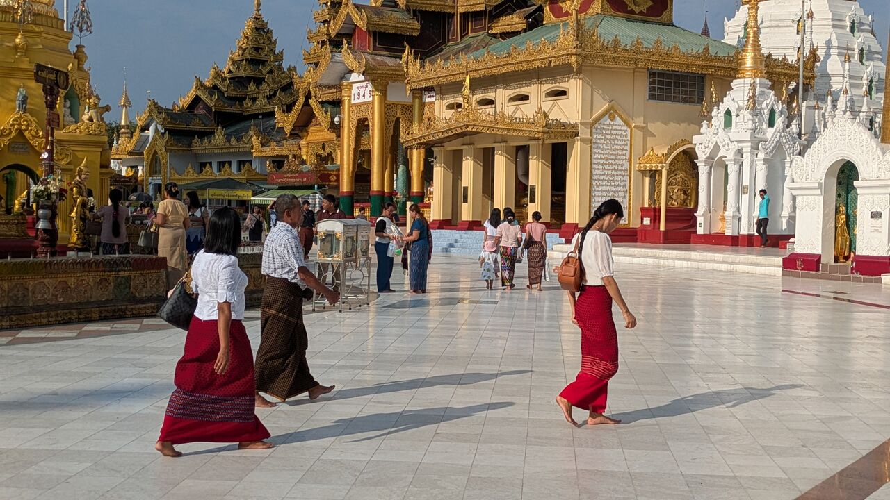 荘厳な景色に見とれていましたが、そのうちミャンマー市民の格好が気になりました。