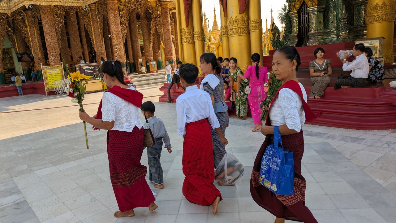 みんなロンジーというミャンマーの民族衣装を着ています。