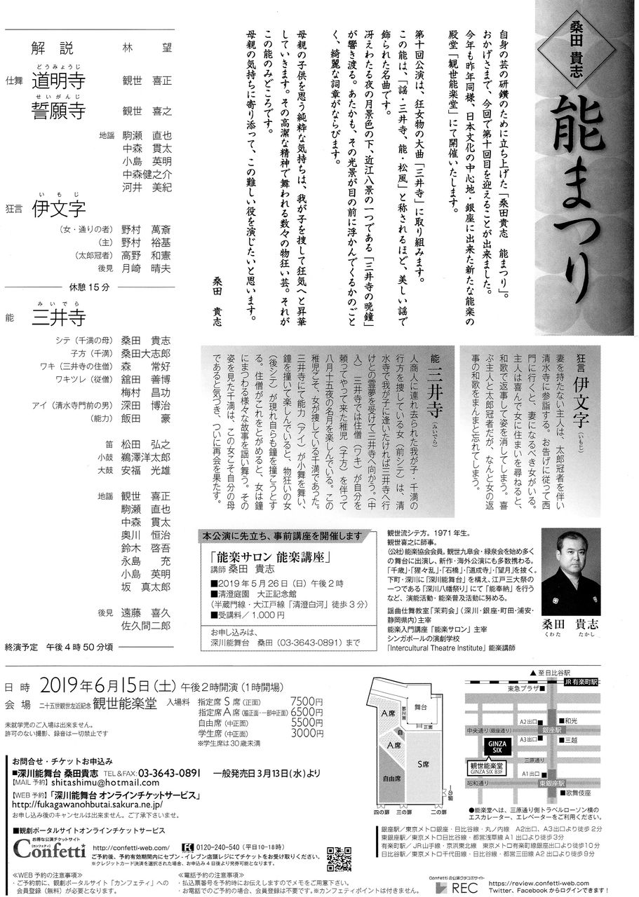 その他、観世喜之師「誓願寺」・観世喜正師「道明寺」の仕舞も見どころです。