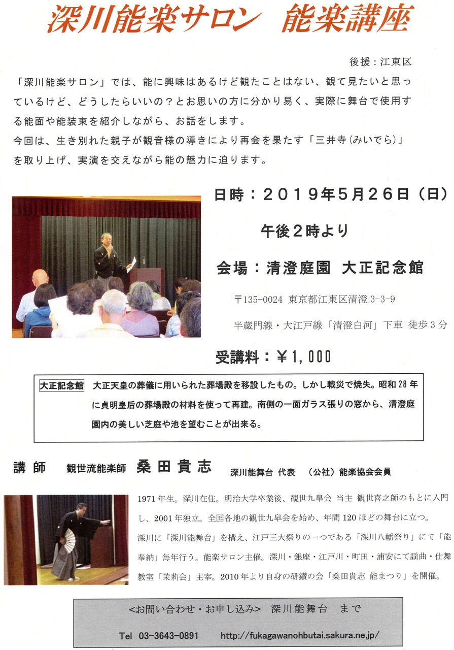 今年も、江東区から後援をいただきまして、「深川能楽サロン」を開催します。