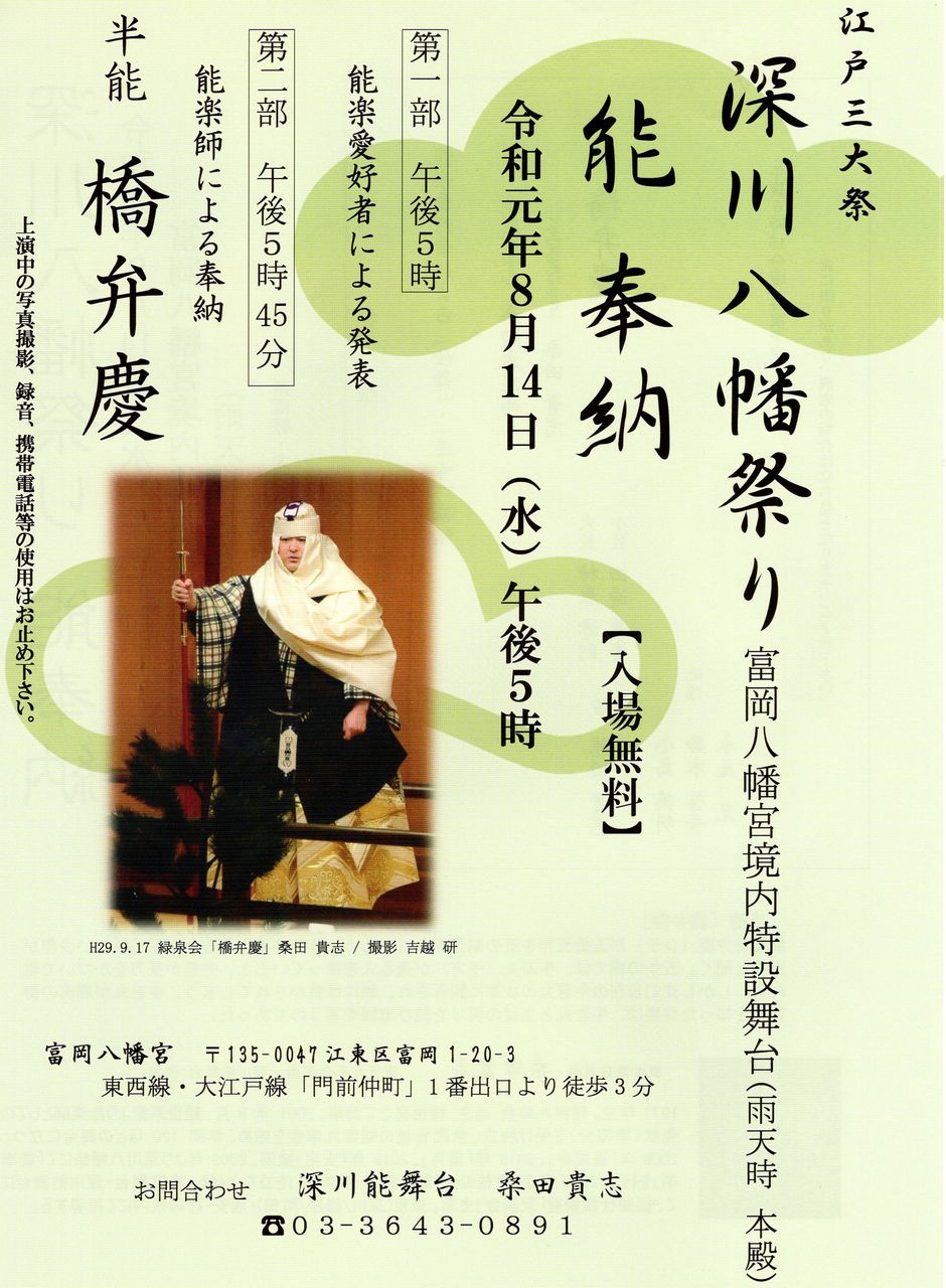 今年も「深川八幡祭 能奉納」無事に終わりました。