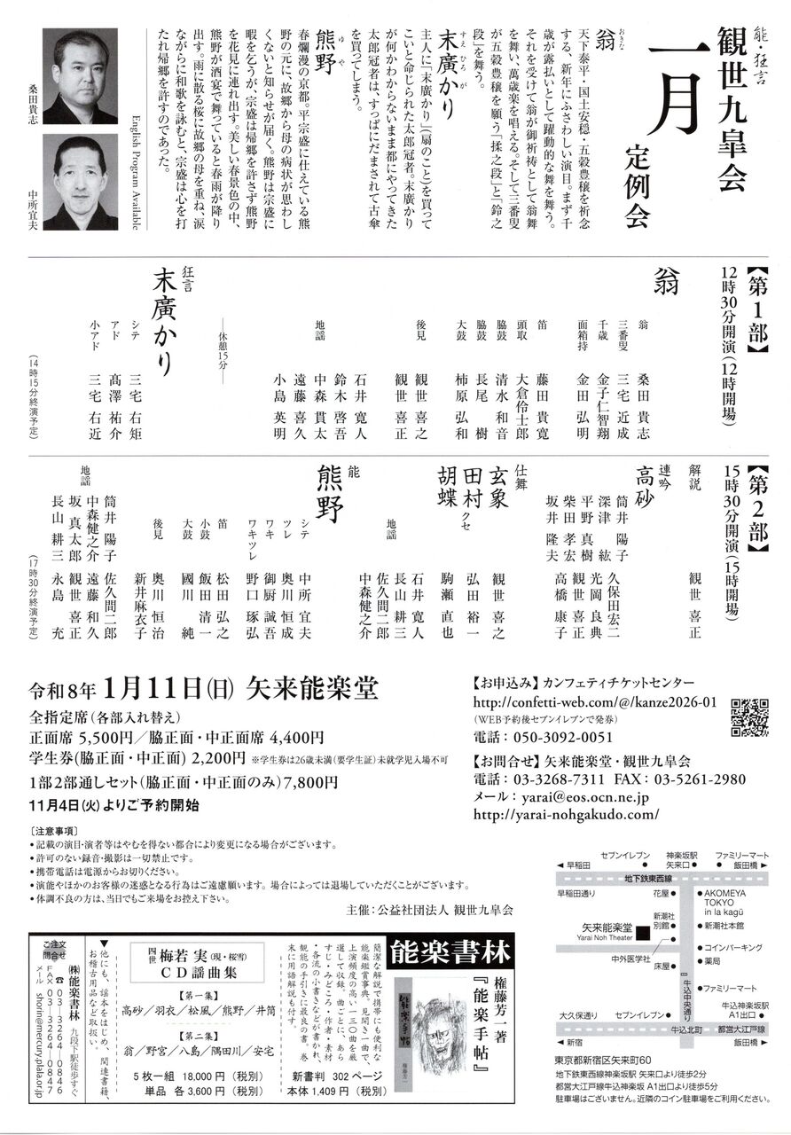 2026年の幕開けの、観世九皐会一月定例会にて「翁」を披きます。