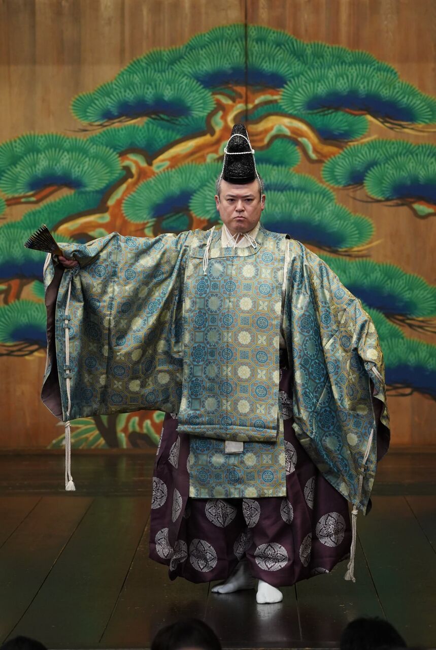 「翁」の時は、囃子方や後見も、素袍(すおう)上下に侍烏帽子という最高礼装で舞台に臨みます。